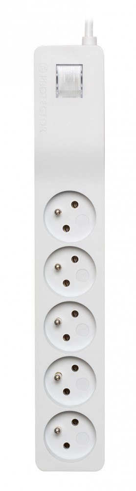 Listwa z pięcioma gniazdami z bolcem uziemiającym. Absorpcja energii wynosi 155 J.