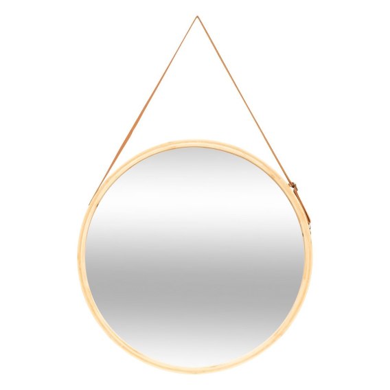 Stylowe lustro ścienne o średnicy 50 cm to połączenie naturalnego bambusa i eleganckiego skórzanego paska do zawieszenia. Okrągła forma i ciepła kolorystyka dodają wnętrzu lekkości i przytulności. Idealne do przedpokoju, łazienki, salonu lub sypialni. Lekka konstrukcja ułatwia montaż, a naturalne materiały wpisują się w modne, ekologiczne aranżacje.