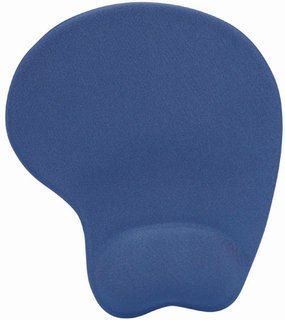 Podkładka pod mysz komputerową w kolorze niebieskim. Podkładka z żelową podpórką pod nadgarstek. Nadaje się do użycia przez myszy laserowe i optyczne. Posiada antypoślizgowy spód.