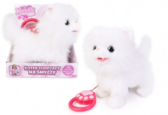 Maskotka interaktywna Kot chodzący na smyczy biały