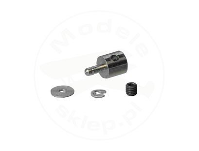 Mocowanie bowdena na serwo M2 z zawleczką zaciskową, podkładką i śrubką imbusową.
