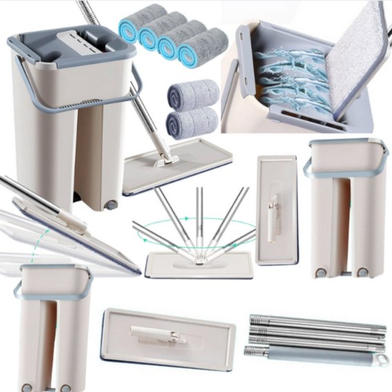 Mop z Wiadrem Wyciskany Płaski Dwukomorowy ułatwia sprzątanie dzięki dwukomorowemu systemowi oddzielającemu czystą i brudną wodę. Idealny do różnych podłóg, z teleskopowym drążkiem i dwoma wkładami z mikrofibry. Lekki, łatwy w przechowywaniu.