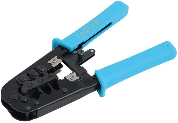 Zaciskarka do wtyków RJ11, RJ12, RJ45. Ściągacz izolacji. Obcinacz kabli. Materiał wykonania: Metal. Certyfikat CE oraz RoHS.