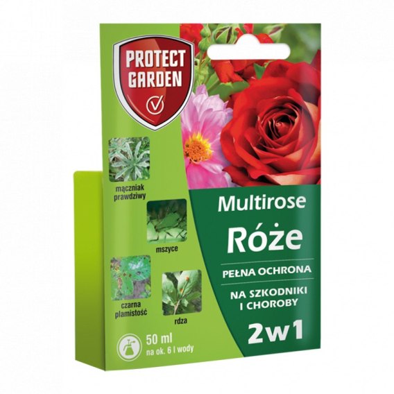 Multirose to środek łączący działanie na szkodniki i choroby grzybowe roślin w postaci koncentratu do rozpuszczenia w wodzie, do ochrony róż i roślin ozdobnych. Zawiera deltametrynę o działaniu kontaktowym, która szybko zwalcza szkodniki i tebukonazol działający układowo, dzięki czemu zapewnia roślinom pełną ochronę zarówno przed szkodnikami jak i chorobami grzybowymi. Preparat zwalcza mszyce i choroby grzybowe roślin takie jak: mączniaki prawdziwe, rdze i plamistości liści, w tym czarną plamistość róży.