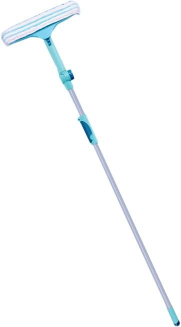 Myjka do okien z teleskopową rączką o zasięgu 2 metrów. Posiada ruchomy przegub oraz 3-stronną przypinaną nakładkę z MicroFibry.