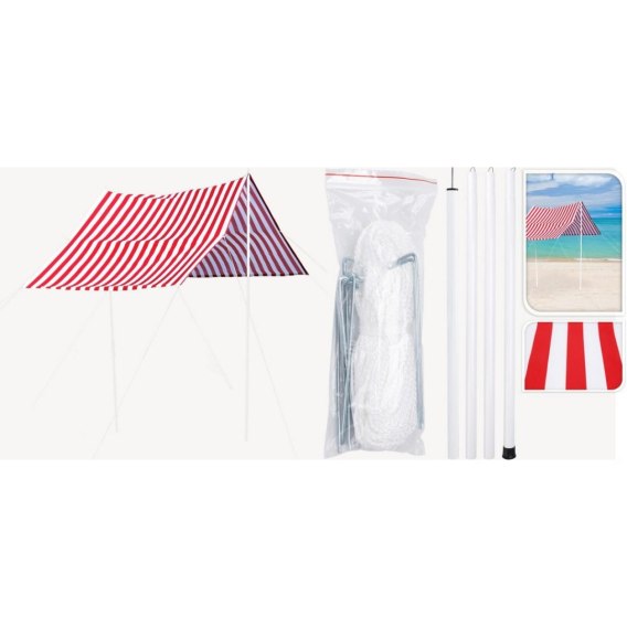 Dołączone do namiotu metalowe słupki i linki naprężające ze śledziami pozwolą rozłożyć żagiel w dowolnym miejscu i użyć w dowolnym celu.