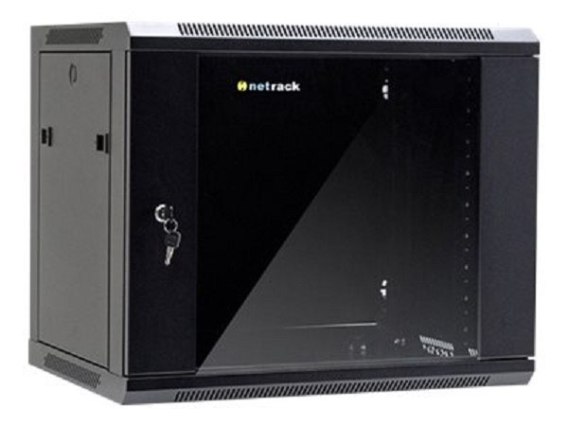 NETRACK 019-090-645-022 Netrack szafa wisząca 19, 9U/600x450mm - czarny, drzwi szklane, otwierane boki