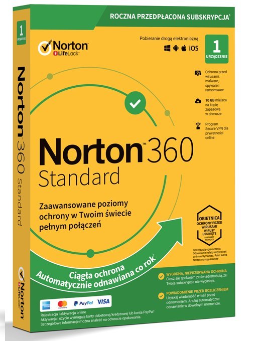 NORTONLIFELOCK 360 standard 10GB PL 1 user 1 device 12mo generic ret1 mm