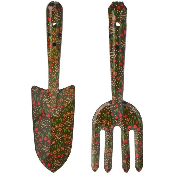 Ten uroczy zestaw narzędzi ogrodniczych to doskonały wybór dla każdego, kto ceni sobie komfort pracy w ogrodzie. W skład zestawu wchodzą: widelec (26,7x8 cm) oraz łopatka (28,7x7 cm), wykonane z solidnego metalu, co zapewnia ich trwałość i odporność na uszkodzenia.