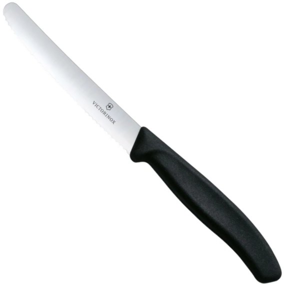 Nóż marki Victorinox sprawdzi się w każdej gastronomii do pomidorów. Jego ząbkowane i zaokrąglone ostrze zostało wykonane ze stali nierdzewnej walcowanej, rękojeść zaś z polipropylenu.