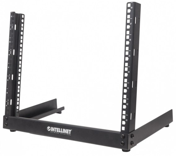 Zaoszczędź miejsce w SoHo (małe biuro, biuro domowe) lub serwerowni dzięki Intellinet Network Solutions 19-calowy stojak do otwartej szafy biurkowej.