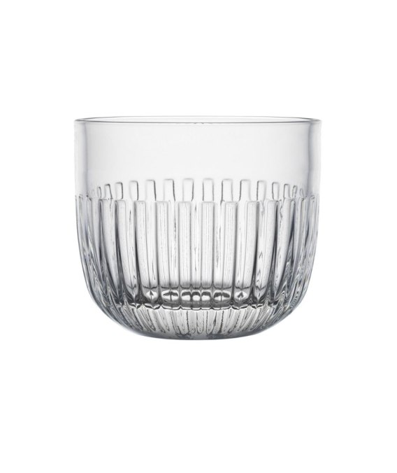 Stylowa i niezwykle praktyczna w użytkowaniu, szklanka z kolekcji Ouessant francuskiej marki La Rochère, wykonana z prasowanego szkła, ozdobiona eleganckimi pionowymi żłobieniami w kolorze transparentnym. Jest odpowiednio wyważona i wygodnie leży w dłoni. Idealnie sprawdzi się do serwowania wody, soków i zimnych napojów.