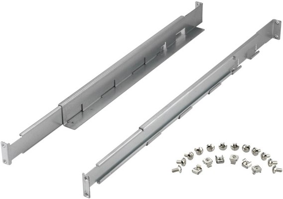 Zestaw składa się z 2 szyn; 12 śrub i 6 koszyczków, Umożliwia montaż zasilacza UPS w szafie rack