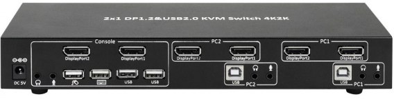 Przełącznik konsoli. Przeznaczony do obsługi i zarządzania dwoma komputerami DP/USB z pomocą jednej klawiatury, myszy i jednego lub dwóch monitorów.