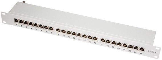 Patchpanel CAT6A 19' 24 porty, STP, szary