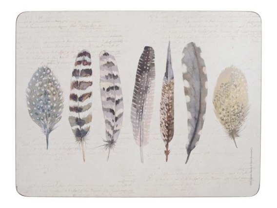 Zestaw sześciu stylowych i wyjątkowo praktycznych podkładek korkowych premium. Misternie namalowane pióra siedmiu różnych ptaków są ułożone na kremowym tle z wyblakłymi adnotacjami, aby uzyskać delikatny, ładny wygląd. Podkładki zwieńczone są lakierowaną powierzchnią, która jest cudownie gładka w dotyku.