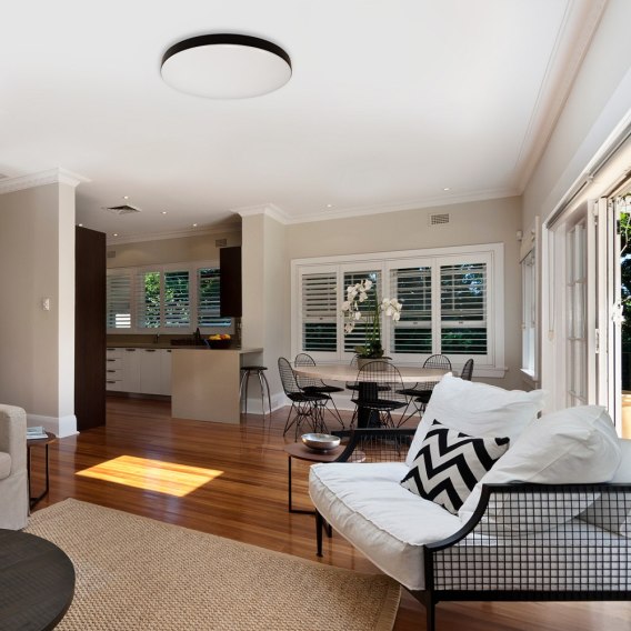 Plafon sufitowy Maya LED o średnicy 33 cm to nowoczesne i eleganckie oświetlenie, które doskonale pasuje do różnych wnętrz. Plafon jest wyposażony w energooszczędne diody LED, co pozwala na oszczędność energii i długotrwałe użytkowanie. Czarny stelaż plafonu sufitowego Maya nadaje mu nowoczesnego wyglądu i sprawia, że lampka jest uniwersalna i łatwo pasuje do wielu stylów dekoracyjnych. Stelaż wykonany jest z trwałego materiału, zapewniając solidność i wytrzymałość. Główną cechą tego plafonu jest biały klosz z tworzywa o średnicy 33 cm, który zapewnia równomierne i delikatne rozproszenie światła. Matowe wykończenie klosza sprawia, że światło jest miękkie i przyjemne dla oka. Średnica 33 cm zapewnia wystarczającą ilość oświetlenia dla średniej wielkości pomieszczenia. Plafon sufitowy Maya LED jest łatwy w instalacji i może być zamontowany na suficie w dowolnym pomieszczeniu, takim jak salon, sypialnia, kuchnia czy przedpokój.