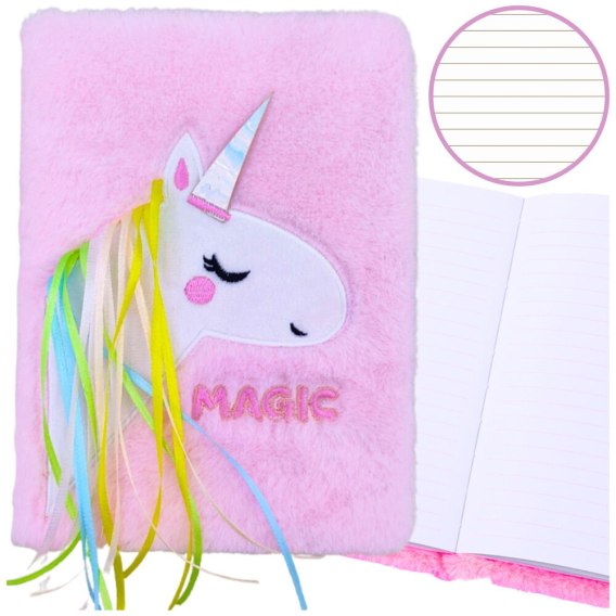 Pluszowy Futerkowy Notatnik Zeszyt W Linie Z Jednorożcem Grzywa Kolorowy A5