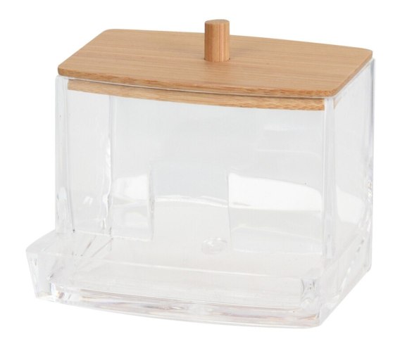 Pojemnik na patyczki do uszu od Bathroom Solutions wyposażony został w pokrywę z bambusa, która zapobiega przedostawaniu się kurzu oraz wody. Prosty a zarazem elegancki design sprawia, że pojemnik wykorzystasz zarówno w sypialni jak i łazience.