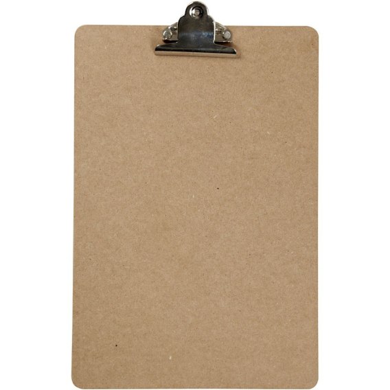 Podkładka z MDF do dokumentów i papieru w rozmiarze A4. Posiada metalowy klips z otworem wystający ponad deskę, dzięki któremu możemy zawiesić podkładkę na gwoździu lub na sznurku.