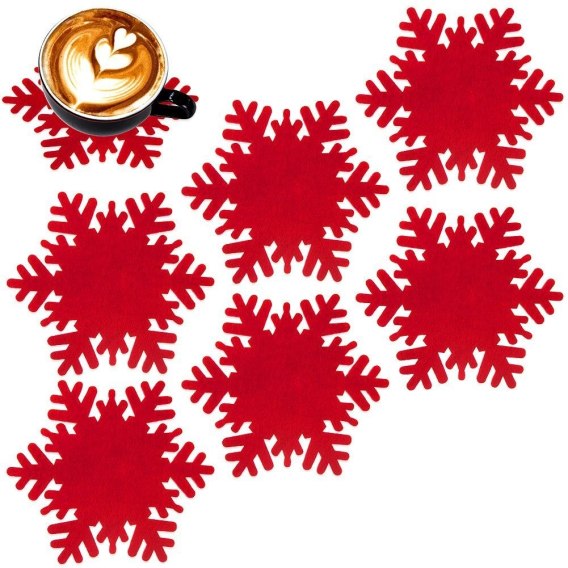 • PRZYDATNE - Zestaw sześciu podkładek pod gorące kubki, szklanki oraz filiżanki w kształcie płatków śniegu. Każda podkładka ma wymiary 13,5 x 13 cm. Stanowią wyjątkową dekorację i ozdobę stołu.
