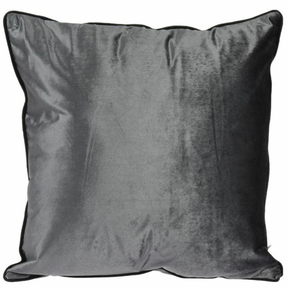 Poduszka to element dekoracyjny, który podnosi komfort siedzenia na kanapie i sprawia, że pomieszczenie staje się przytulne. Prezentowana poduszka dekoracyjna ze względu na swoją prostą formę będzie pasować do pomieszczenia w dowolnym stylu. Materiał welurowy, z którego została wykonana czyni ją wytrzymałą i łatwą w czyszczeniu, a co najważniejsze jest miękka oraz przyjemna w dotyku. Poduszka w kolorze ciemnego srebra z czarną lamówką zapinana na zamek.