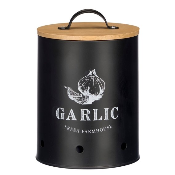 Pojemnik na czosnek czarny bambusowa pokrywka
