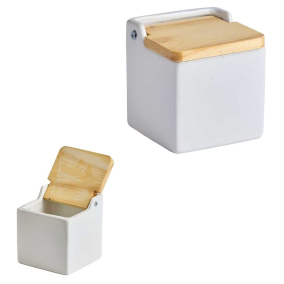 Pojemnik na sól z bambusową pokrywką kwadratowy biały