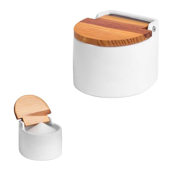 Pojemnik na sól z bambusową pokrywką owalny biały
