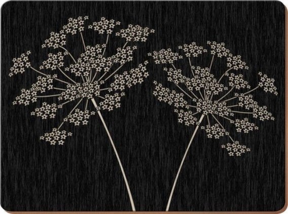 Zestaw czterech stylowych i praktycznych podkładek korkowych, ozdobionych dwiema łodygami z drobnymi kwiatkami w kształcie gwiazdek z kolekcji Silhouette. Lakierowane wykończenie krawędzi zwiększa trwałość i zapobiega uszkodzeniom powierzchni przez wilgoć.