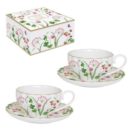 Polne Kwiaty - Zestaw Filiżanek ze Spodkiem Porcelanowych w Ozdobnym Pudełku 100 ml