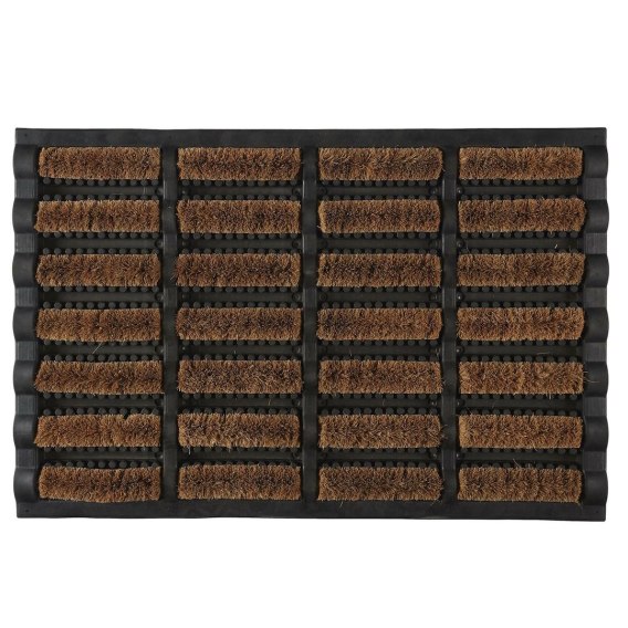 Wycieraczka Brush to praktyczne i trwałe rozwiązanie do utrzymania czystości w domu. Wykonana z solidnej gumy i włókien kokosowych, skutecznie usuwa błoto, piasek i zabrudzenia z obuwia. Dzięki antypoślizgowej podstawie pozostaje stabilna nawet na wilgotnym podłożu, zapewniając bezpieczeństwo użytkowania. Jej wymiary 40 x 60 cm sprawiają, że idealnie pasuje przed drzwi wejściowe, do ogrodu, garażu czy na taras. Wycieraczka łączy funkcjonalność z naturalnym wyglądem, dzięki czemu jest zarówno praktyczna, jak i estetyczna. To niezawodny element wyposażenia, który ułatwia utrzymanie porządku i chroni wnętrze przed wnoszonym brudem.