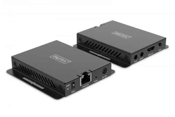 Zestaw Extendera HDMI DIGITUS umożliwia transmisję sygnału HDMI na odległość do 40 m (4K / 120 Hz, 4:4:4) przy użyciu kabli standardu CAT 6 lub wyższego. Zakres funkcjonalności obejmuje także dwukierunkową transmisję sygnału podczerwieni (IR), co umożliwia elastyczne sterowanie źródłem sygnału. Nadaje się również do montażu ściennego, przez co oferuje elastyczne możliwości instalacji.