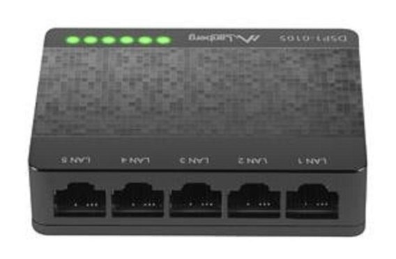 Niezarządzalny przełącznik wyposażony w 5 gniazd sieciowych 10/100 Mbps. Posiada tablicę adresów MAC o pojemności 1000 pozycji.