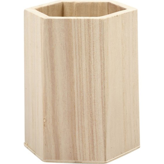 Pudełko na długopisy i ołówki o sześciokątnej podstawie z drewna paulowni cesarskiej.