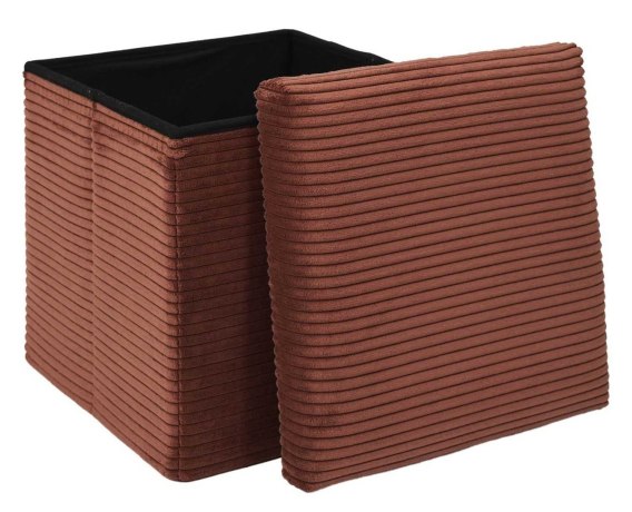 Sztruksowy puf BOXY w kolorze teracotta to praktyczne i stylowe rozwiązanie do każdego wnętrza. Wykonany z miękkiego materiału o prążkowanej fakturze, łączy funkcję komfortowego siedziska z przestronnym schowkiem. Dzięki składanej konstrukcji możesz go łatwo przechowywać lub przestawiać. Idealny do salonu, sypialni, garderoby, przedpokoju, pokoju dziecięcego czy biura. Kolor miedziany pasuje do nowoczesnych, loftowych i skandynawskich aranżacji. Siedzisko Boxy to oszczędność miejsca i porządek - schowasz w nim koce, zabawki, poduszki czy akcesoria. Lekki, a jednocześnie wytrzymały - nadaje się także jako dodatkowe siedzisko dla gości. Prosty montaż (rozkładanie bez narzędzi). Praktyczność, styl i funkcja w jednym meblu. Idealny wybór do małych przestrzeni i wnętrz, które muszą być zarówno ładne, jak i funkcjonalne.
