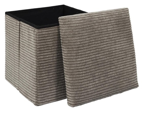 Sztruksowy puf BOXY w kolorze taupe to praktyczne i stylowe rozwiązanie do każdego wnętrza. Wykonany z miękkiego materiału o prążkowanej fakturze, łączy funkcję komfortowego siedziska z przestronnym schowkiem. Dzięki składanej konstrukcji możesz go łatwo przechowywać lub przestawiać. Idealny do salonu, sypialni, garderoby, przedpokoju, pokoju dziecięcego czy biura. Kolor beżowo szary pasuje do nowoczesnych, loftowych i skandynawskich aranżacji. Siedzisko Boxy to oszczędność miejsca i porządek - schowasz w nim koce, zabawki, poduszki czy akcesoria. Lekki, a jednocześnie wytrzymały - nadaje się także jako dodatkowe siedzisko dla gości. Prosty montaż (rozkładanie bez narzędzi). Praktyczność, styl i funkcja w jednym meblu. Idealny wybór do małych przestrzeni i wnętrz, które muszą być zarówno ładne, jak i funkcjonalne.