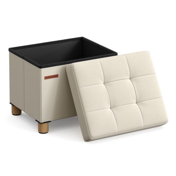 Puf z miejscem do przechowywania łączy elegancki wygląd z funkcjonalnością, stanowiąc praktyczny dodatek do każdego wnętrza. Powierzchnia z imitacji lnu z pikowanym wzorem dodaje stylu, a podwójna warstwa materiału i wysoko elastyczna pianka zapewniają komfort siedzenia. Konstrukcja z solidnych paneli MDF gwarantuje trwałość i stabilność, a pojemność 32 L umożliwia przechowywanie ubrań, książek czy czasopism. Cztery drewniane nogi sprawiają, że mebel stoi stabilnie, a dzięki antypoślizgowym podkładkom chroniona jest podłoga przed zarysowaniami. Łatwy do utrzymania w czystości, składany puf może pełnić funkcję pudełka do przechowywania, podnóżka, dodatkowego siedziska, a nawet stolika kawowego. Jego uniwersalny design sprawdza się w salonie, sypialni, przedpokoju czy garderobie, oferując wygodę i porządek w otoczeniu.