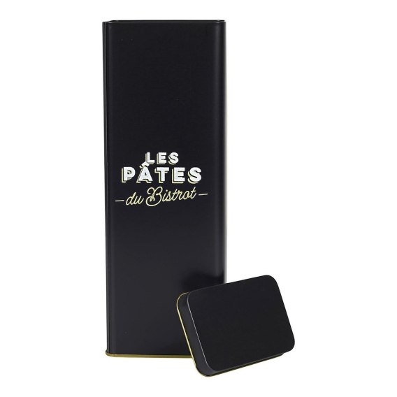 Puszka Bistrot to elegancki pojemnik kuchenny, który doskonale sprawdzi się do przechowywania makaronu spaghetti i innych długich produktów sypkich. Wykonana z trwałego metalu, z nadrukiem Les Pâtes du Bistrot, łączy funkcjonalność z francuskim stylem. Smukły, wysoki kształt pozwala na wygodne przechowywanie, a szczelna pokrywka chroni zawartość przed wilgocią i utratą świeżości. Stylowe wykończenie w klasycznej czerni lub pastelowych paskach sprawia, że puszka świetnie prezentuje się na kuchennym blacie, dodając wnętrzu charakteru. To praktyczny i dekoracyjny element, idealny zarówno do codziennego użytku, jak i jako prezent dla miłośników gotowania.