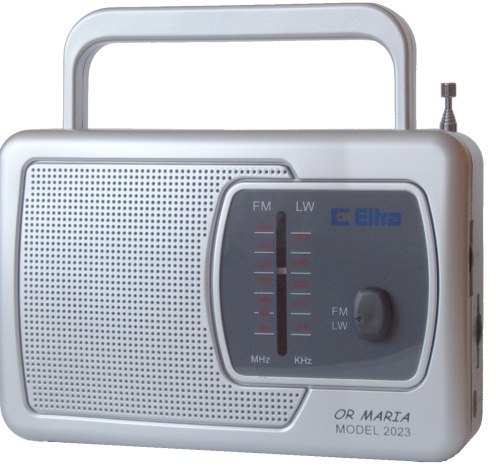 Radio z analogowym tunerem zakresach LW/FM. System dźwięku mono, wyjście słuchawkowe, może być zasilane z sieci lub za pomocą baterii.
