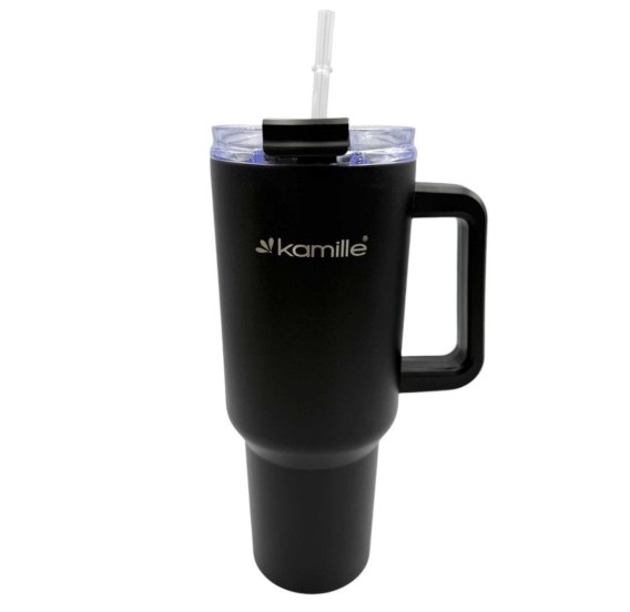 STALOWY KUBEK TERMICZNY TERMOS 1200ml Z RĄCZKĄ I SŁOMKĄ KM-2172