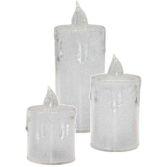 ŚWIECA DEKORACYJNA 3 SZT TRANSPARENTA CIEPŁY BIAŁY 1 LED