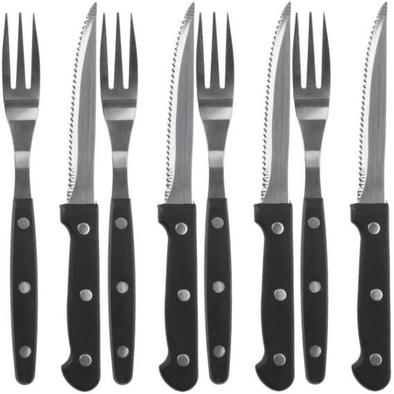 Solidne uchwyty z 3-punktowym nitowaniem ze stali stabilnie leżą w dłoni, są idealne do spożywania steków, pizzy, burgerów i potraw z grilla.