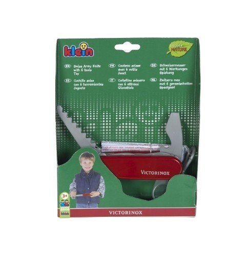 W scyzoryku znajduje się łyżeczka, szkło powiększające, widelczyk, nożyk, otwieracz do butelek, mała piłka. Wszystkie te przyrządy są wykonane z plastiku, pozbawione są ostrych krawędzi i są bezpieczne dla dzieci, oczywiście zawsze gdy zabawa odbywa się pod opieką osoby dorosłej. Zabawka w postaci tego scyzoryka pozwoli dzieciom mieć takie samo narzędzie, jakiego używają ich rodzice, czyli najbardziej rozpoznawalnego scyzoryka świata. Zabawka zapewni dzieciom mnóstwo wrażeń i realistycznych doświadczeń w całkowicie bezpiecznych warunkach, a dzięki wysokiej jakości będzie on służył przez długi czas.