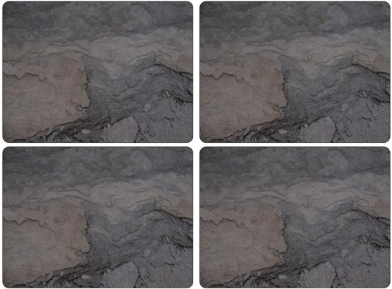 Zestaw czterech niezwykle eleganckich i praktycznych podkładek korkowych, ozdobionych przepięknym motywem skał łupkowych z kolekcji Midnight Slate.