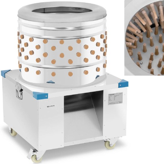 Maszyna do skubania drobiu marki Wiesenfield nada się idealnie do użytku w gospodarstwach rolnych, u hodowców hobbystycznych lub w małych firmach, które nie wymagają certyfikatów Unii Europejskiej. Moc urządzenia 1,5 kW, dzięki temu może przerobić do 4 kurczaków w ciągu minuty. Skubanie dwóch kurczaków jednocześnie zajmuje około 18 sekund. Wydajność urządzenia to aż 98%. Maszyna w trakcie godziny może przerobić aż 360 kilogramów drobiu. 131 gumowych wypustek dbają, aby przy skubaniu z prędkością 1400 obrotów na minutę żaden element skóry nie został uszkodzony. Urządzenie ma cztery kółka, które można zabezpieczyć dwoma hamulcami.