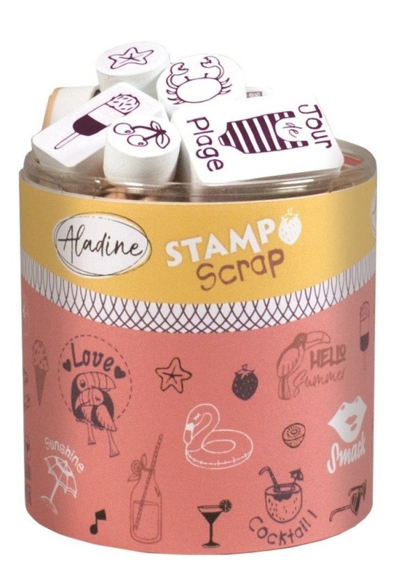 Zestaw 37 gumowych stempelków. W zestawie dodatkowo jedna gąbeczka z czarnym tuszem 2,4x2,4 cm. Wymiary zestawu D: 9 cm, H: 9,5 cm.