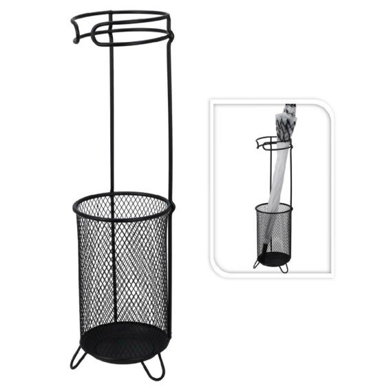 Nowoczesny i praktyczny stojak na parasole w eleganckim czarnym kolorze to funkcjonalny dodatek do przedpokoju, biura lub poczekalni. Ażurowy kosz z metalu zapewnia dobrą wentylację i szybkie osuszanie parasoli.
