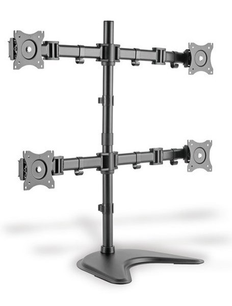 Stojak biurkowy Digitus DA-90364 do zamontowania 4 monitorów o maksymalnej przekątnej ekranu 27 cali. Maksymalne obciążenie całości 32 kg. Zgodny ze standardami VESA: 75 x 75 oraz 100 x 100. Możliwość regulacji wysokości, kąta nachylenia w pionie oraz obrotu.