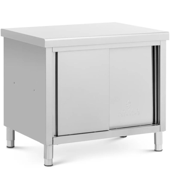Stół roboczy z szafką marki Royal Catering to profesjonalne wyposażenie dla profesjonalnej kuchni. Sprawdzi się w restauracjach, stołówkach, hotelach czy w piekarniach. Spełnia wysokie wymagania branży gastronomicznej. Szafka przelotowa umożliwia szybki dostęp z obu stron, dzięki czemu łatwo wymienić wszelkiego rodzaju przybory kuchenne. Mebel stoi na nóżkach, które są regulowane w zakresie do 20 mm, dla większej stabilności nawet na nierównej podłodze. Powierzchnia robocza o wymiarach 100 x 70 cm zapewnia miejsce na codzienną pracę. Przemyślane połączenie blatu roboczego ze wzmocnioną płytą MDF oraz szafki do przechowywania zapewnia szerokie zastosowanie i łatwość w utrzymaniu porządku w kuchni. Wnętrze przedzielone jest solidną półką. Całkowite obciążenie stołu gastronomicznego wynosi 500 kg. Z czego 300 kg przypada na wzmocniony blat, podczas gdy dolne półki zniosą obciążenie po 100 kg. Wykonany z wysokiej jakości stali nierdzewnej stół roboczy zachwyca dużą wytrzymałością, gwarantuje długą żywotność oraz jest odporny na korozję i uszkodzenia mechaniczne (np. zadrapania). Gładkie powierzchnie są łatwe w czyszczeniu. Dzięki temu mebel spełnia wymogi higienicznej pracy z żywnością.